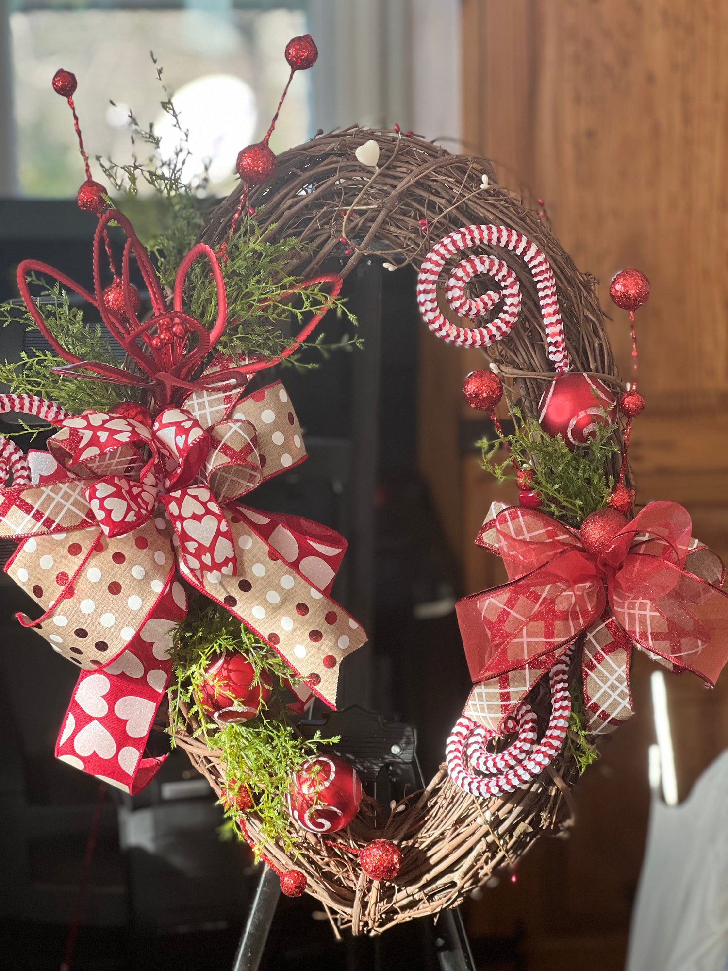 This oval grapevine wreath measures 24" high x 16" wide x 7"...